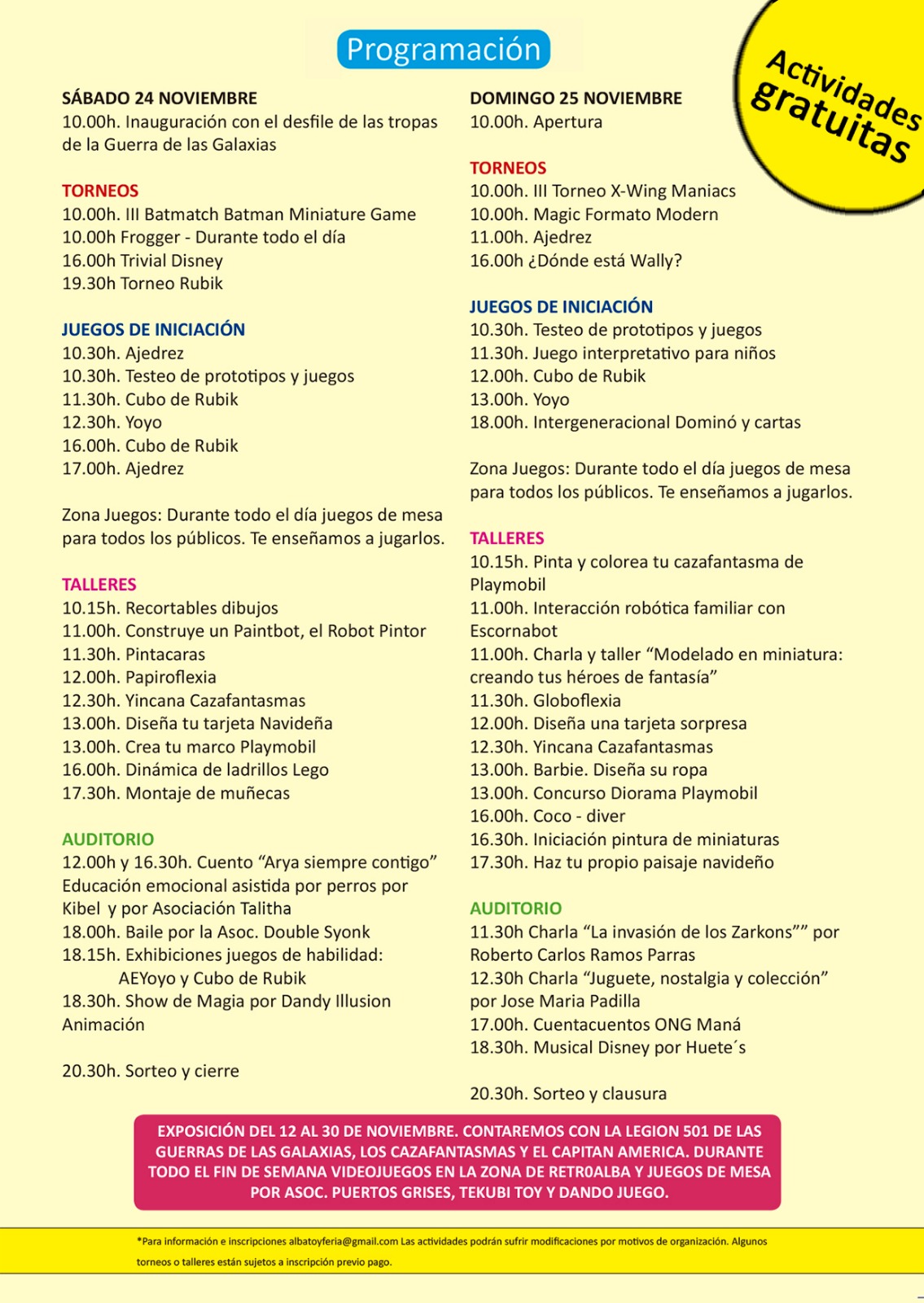 Gran exposición de juguetes, comercio especializado, actividades y talleres, exhibiciones de juegos, musical Disney, show de magia, cuenta cuentos, torneos, y mucho más...