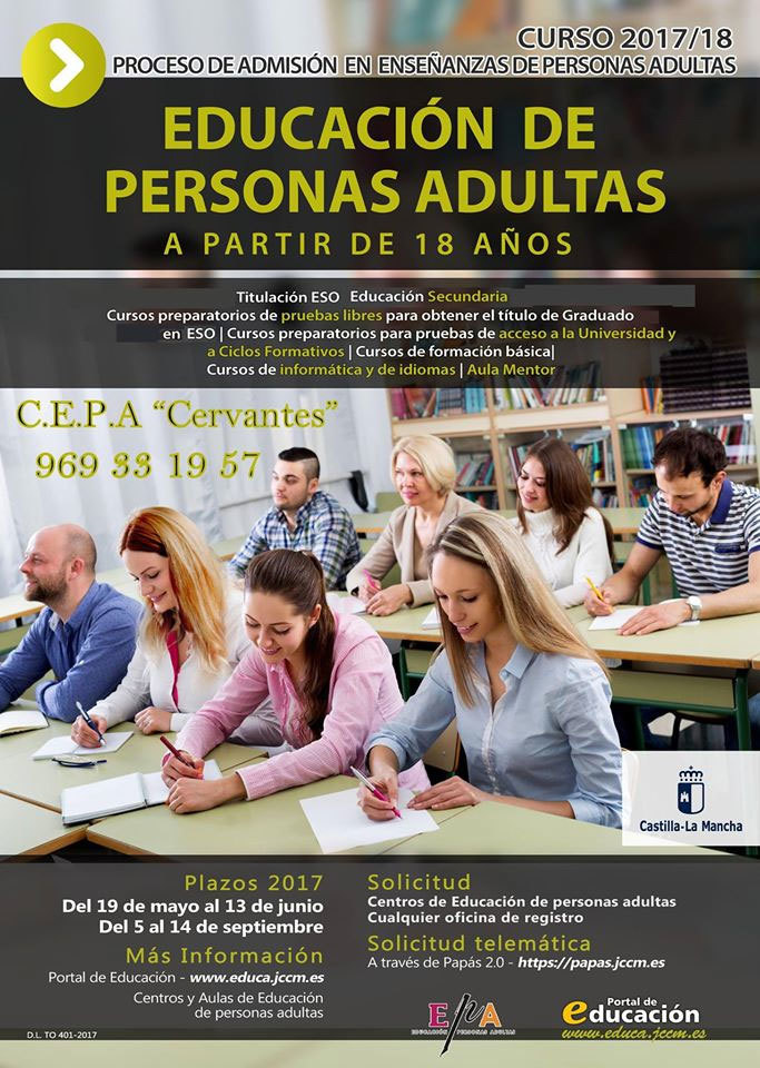 Ya esta abierto el plazo de matriculación para la educación de personas adultas en el Cepa Cervantes para el curso 2017/2018.