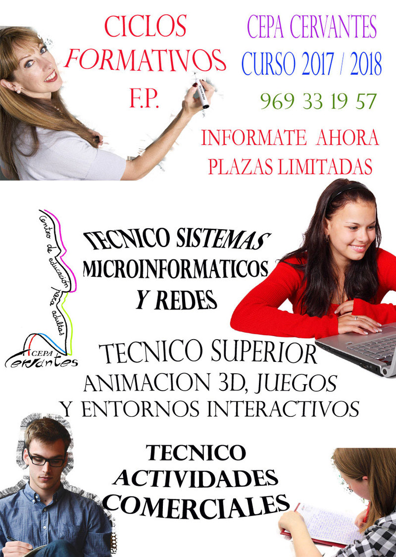 También están disponibles los siguientes Ciclos Formativos de Formación Profesional en Cepa Cervantes para este curso 2017/2018.