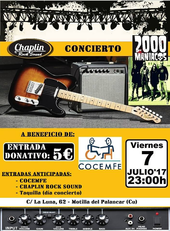 Viernes 7 de Julio >> Concierto de 2000 Maniacos en directo a beneficio de COCEMFE Motilla.