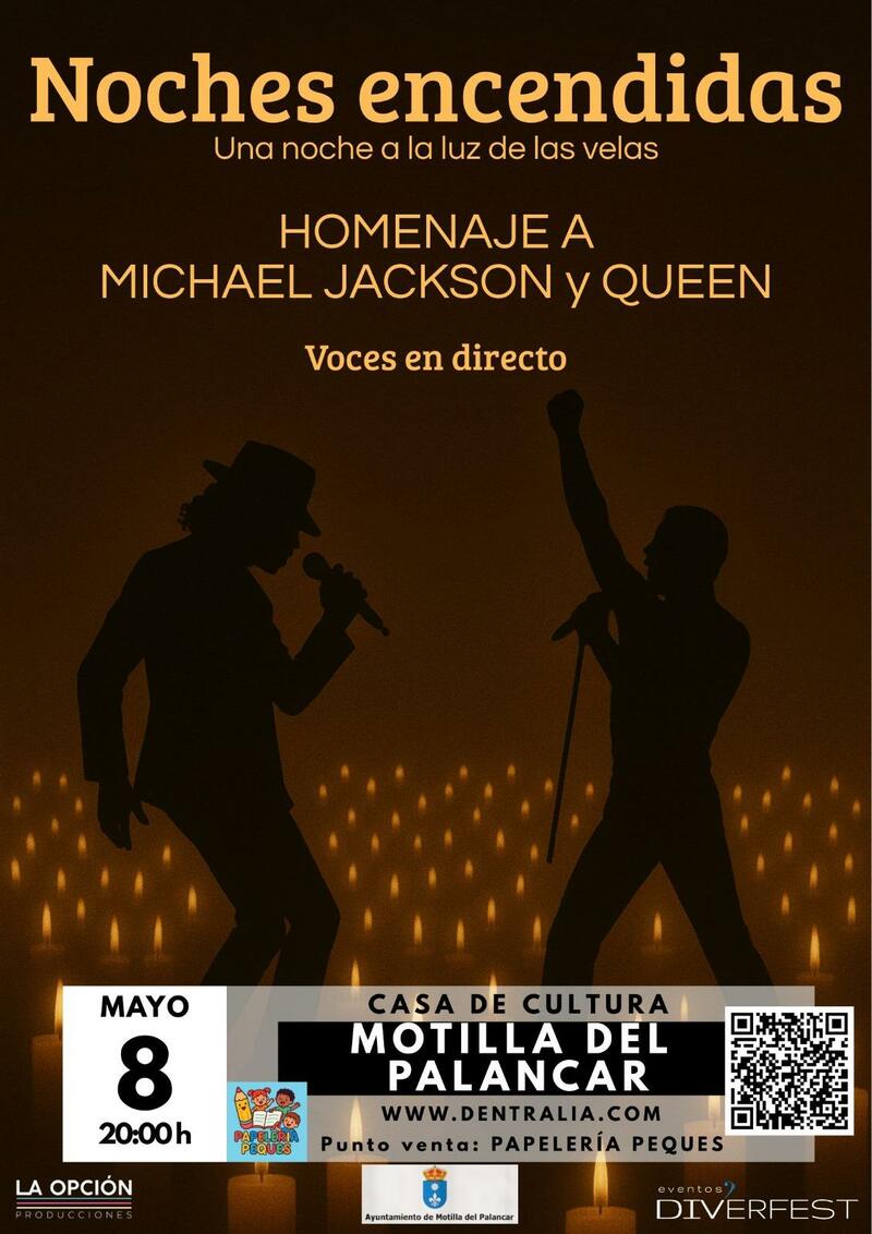 Si estás buscando un plan diferente en Motilla del Palancar, atento porque esto te interesa. Desde motilladelpalancarapp lanzamos un sorteo de 2 entradas para asistir gratis a “Noches Encendidas: homenaje a Michael Jackson y Queen”, un espectáculo que llegará el 8 de mayo a la Casa de Cultura en un formato único a la luz de las velas.