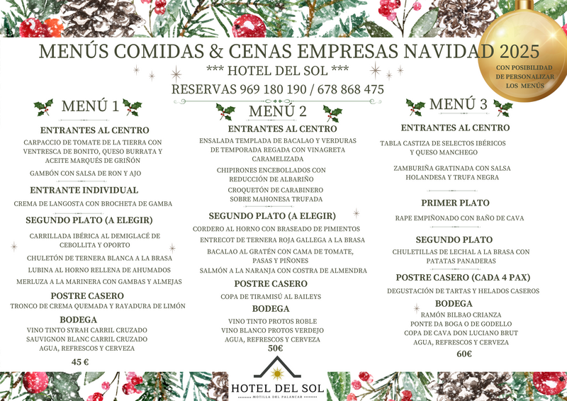Además de la cena de fin de año, el Hotel del Sol ha presentado tres menús especiales para comidas y cenas de empresa durante la campaña navideña.