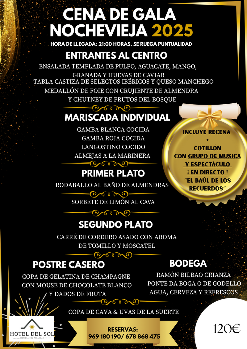 El Hotel del Sol de Motilla del Palancar ha presentado su propuesta para la cena de Nochevieja 2025, un evento que incluye un menú de gala, cotillón con música en directo y espectáculo hasta la madrugada. Con aforo limitado y reservas ya abiertas, se trata de una de las opciones más destacadas en la comarca para despedir el año con gastronomía, música y ambiente festivo.