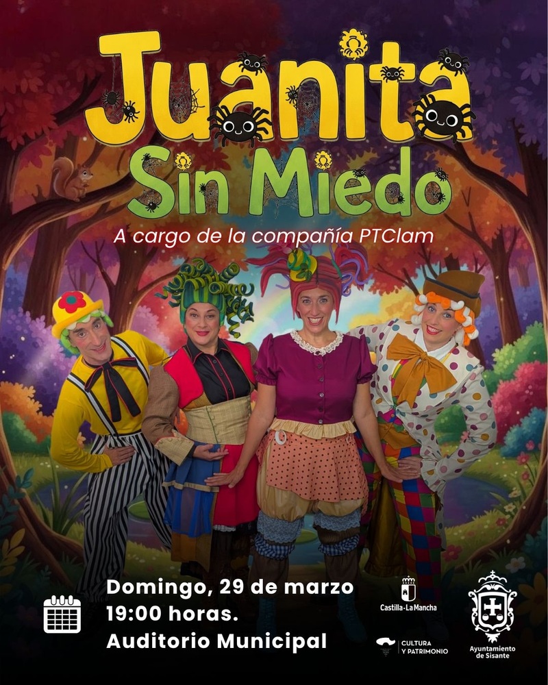La programación cultural también incluye teatro para toda la familia en Sisante. El domingo 29 de marzo, a las 19:00 horas, el Auditorio Municipal acogerá la representación de “Juanita sin miedo”, a cargo de la compañía PTClam y El Globo Rojo Teatro.