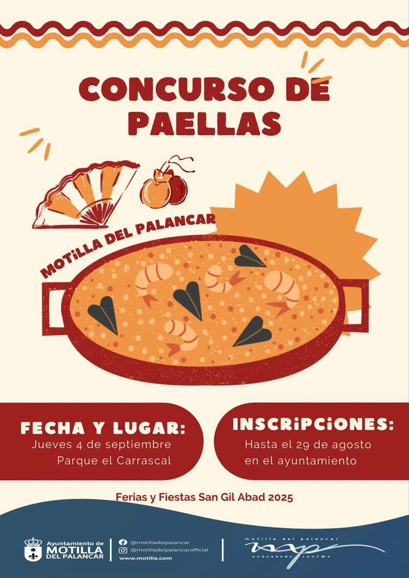 El concurso de paellas de Motilla del Palancar se celebrará el próximo 4 de septiembre de 2025 en el Parque El Carrascal, como parte de las actividades de la Feria y Fiestas de San Gil Abad.