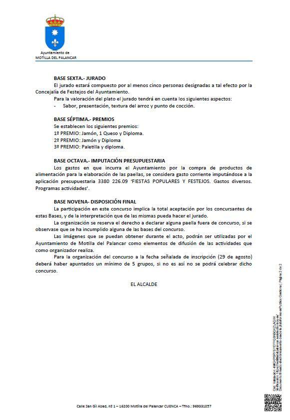 La inscripción es obligatoria y debe realizarse en las oficinas del Ayuntamiento de Motilla del Palancar antes del 29 de agosto de 2025. El concurso requiere un mínimo de cinco grupos inscritos para poder celebrarse.
