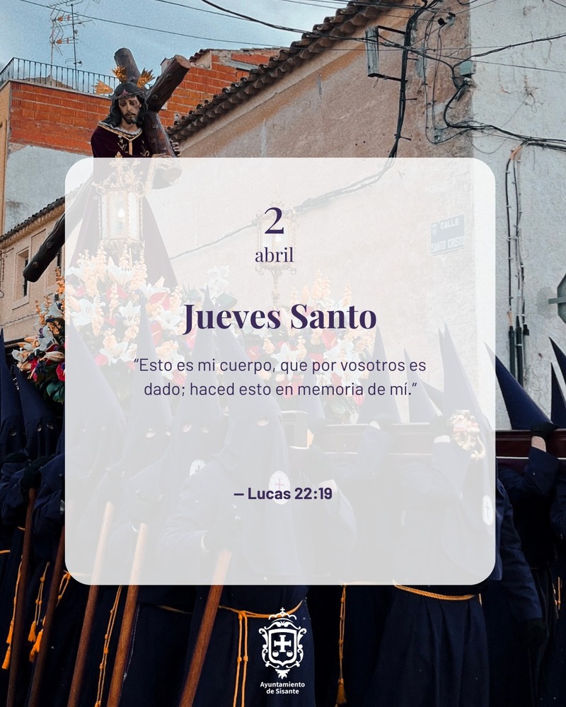 En Sisante, el Jueves Santo también se vivirá con intensidad a través de una agenda que combina actos litúrgicos y procesionales. La jornada comenzará con los Santos Oficios a las 17:30 horas en el Convento de Nuestro Padre Jesús Nazareno.