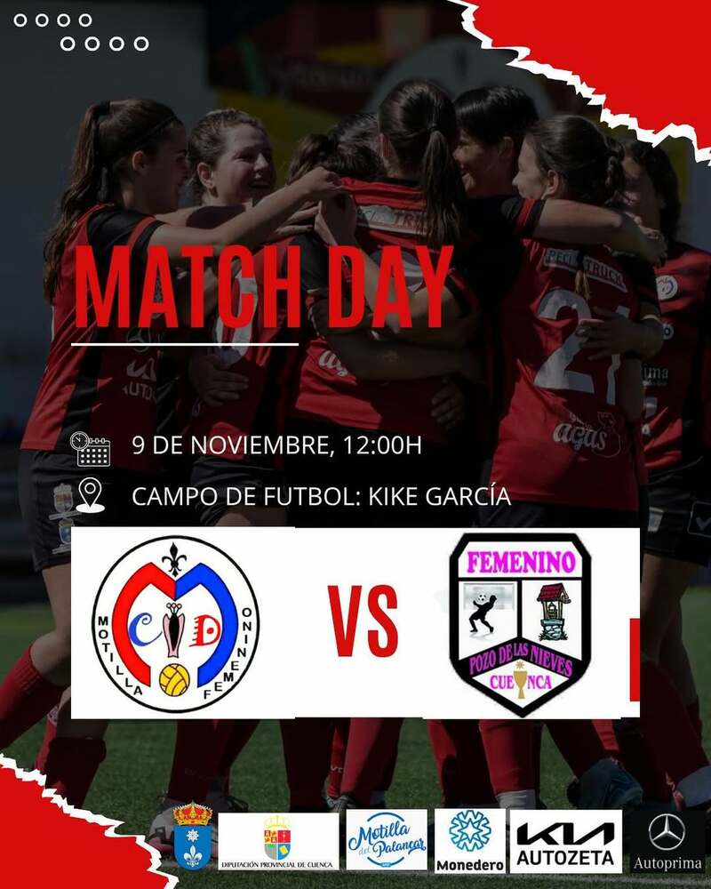 El CD Motilla Femenino jugará este domingo 9 de noviembre a las 12:00 horas en el Campo de Fútbol “Kike García” frente al CD Pozo de las Nieves. Las motillanas llegan con ganas de volver a sumar tres puntos tras su derrota ante La Roda CF Femenino (3-1) y buscan escalar posiciones en la clasificación, donde actualmente ocupan la octava plaza.