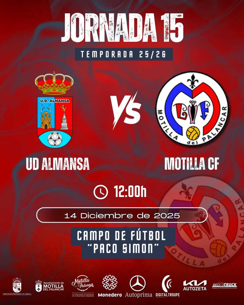 El Motilla CF afronta este domingo 14 de diciembre su 15º partido de la temporada con una exigente salida al Campo de Fútbol “Paco Simón”, donde se medirá a la UD Almansa, líder de la clasificación, a partir de las 12:00 horas. El conjunto motillano buscará sumar de nuevo lejos de casa ante un rival que está firmando una gran temporada.
