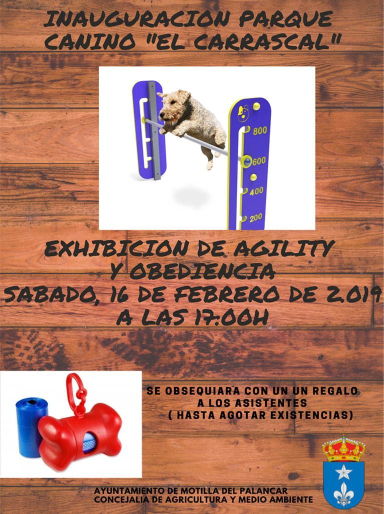 El próximo sábado 16 de febrero a partir de las 17:00h tendrá lugar una exhibición de agilidad y obediencia en el nuevo Parque Canino de Motilla del Palancar.