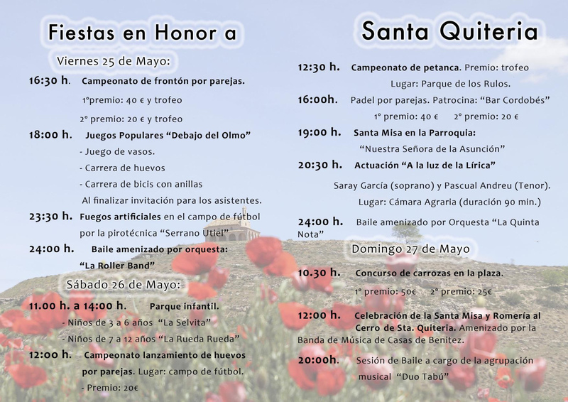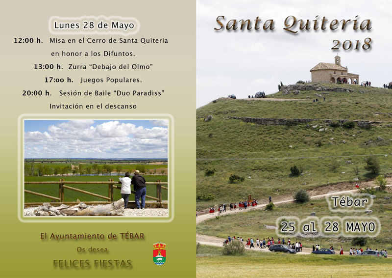 Del 25 hasta el 28 de Mayo se celebra en la localidad de Tebar sus tradicionales Fiestas de Santa Quiteria 2018.
