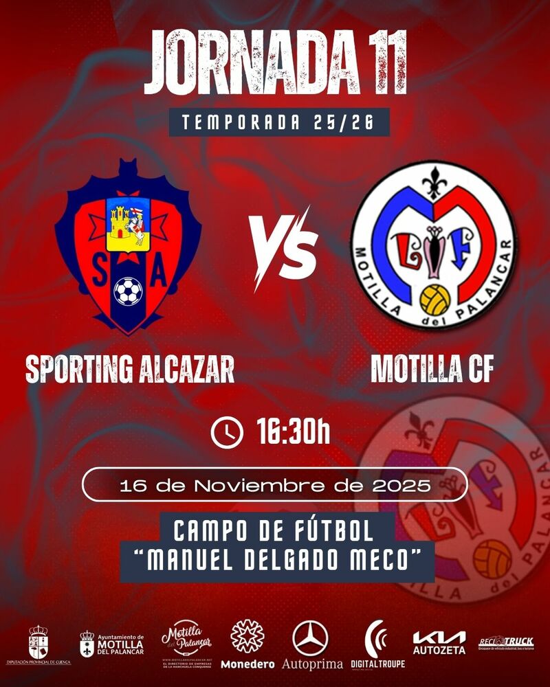 El Motilla CF visita este domingo al Sporting Alcázar en el Campo de Fútbol Manuel Delgado Meco, donde se disputará el 11.º partido de la temporada a las 16:15 horas del 16 de noviembre. El equipo afronta el duelo con el objetivo de mantener su racha positiva y seguir escalando puestos en la clasificación tras su primera victoria en casa, un sólido 3-1 ante La Roda CF el pasado 9 de noviembre. Antes, el conjunto motillano ya había vencido por 1-2 al CD Valdepeñas, lo que le permitió alcanzar los 14 puntos y situarse en la décima posición, consolidando una línea ascendente en su juego.