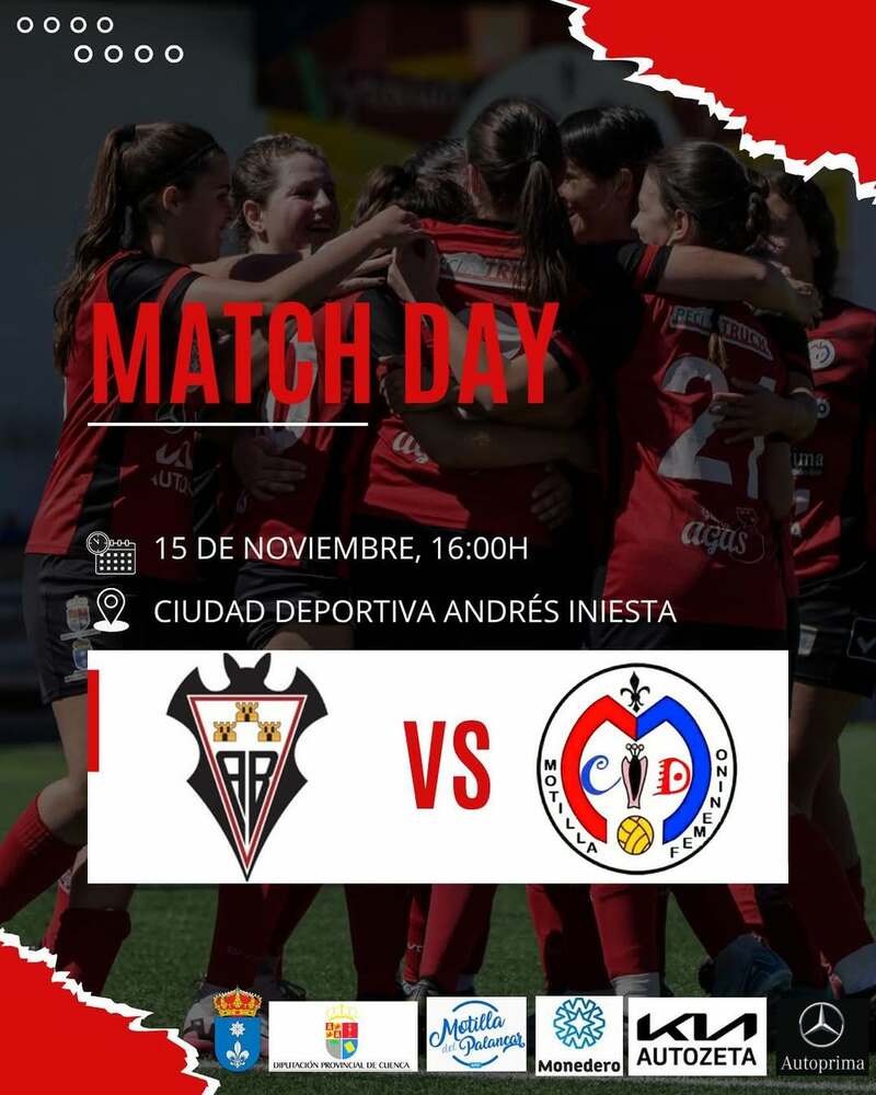 El C.D. Motilla Femenino afrontará el quinto partido de la temporada el sábado 15 de noviembre a las 16:00 horas ante el Alba Fundación Femenino “E” en la Ciudad Deportiva Andrés Iniesta. El equipo buscará volver a sumar tres puntos y mantenerse entre los primeros puestos de la tabla. Las motillanas llegan de un triunfo importante en casa por 3-2 frente al C.D. Pozo de las Nieves, una victoria que les permitió alcanzar los 6 puntos y situarse en la quinta posición tras recuperarse de la derrota sufrida ante La Roda CF el 1 de noviembre.