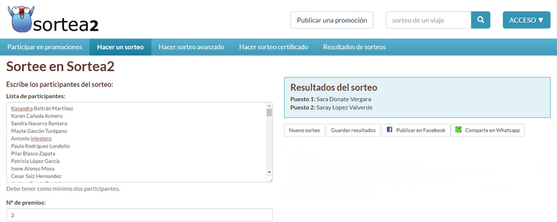 Adjuntamos pantallazo del sorteo, realizado en Sortea2.com: