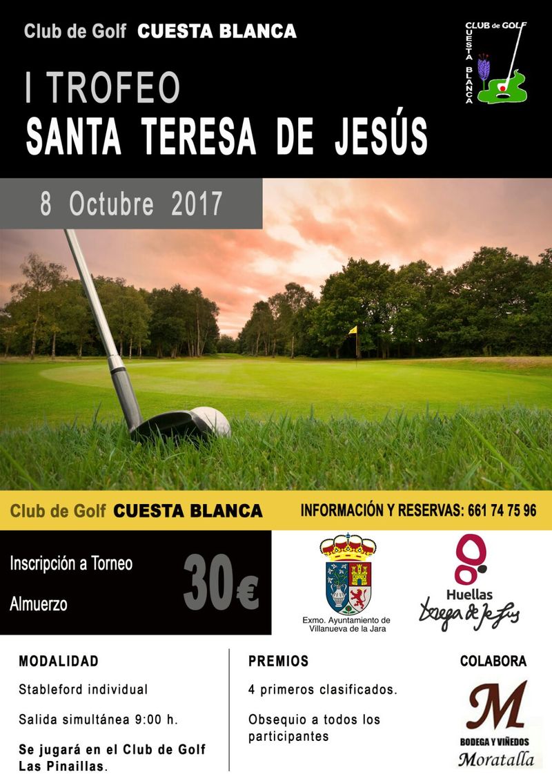 El Domingo 8 de Octubre en el Club de Golf Las Pinaillas se celebrará el I Torneo Santa Teresa de Jesus organizado por el Club de Golf Cuesta Blanca.