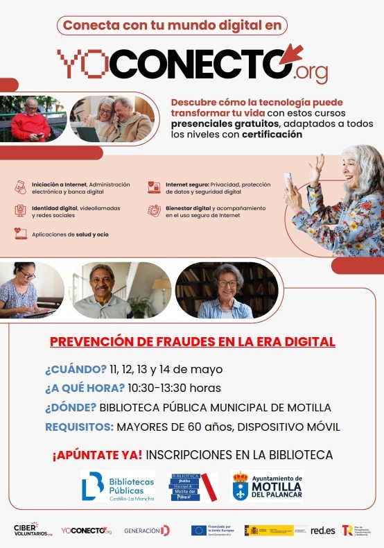 La Biblioteca Pública Municipal de Motilla del Palancar acogerá en mayo un curso gratuito dirigido a personas mayores de 60 años centrado en la prevención de fraudes en la era digital. La iniciativa busca ayudar a los participantes a utilizar Internet de forma segura y a proteger sus datos personales cuando usan dispositivos móviles o navegan por la red.