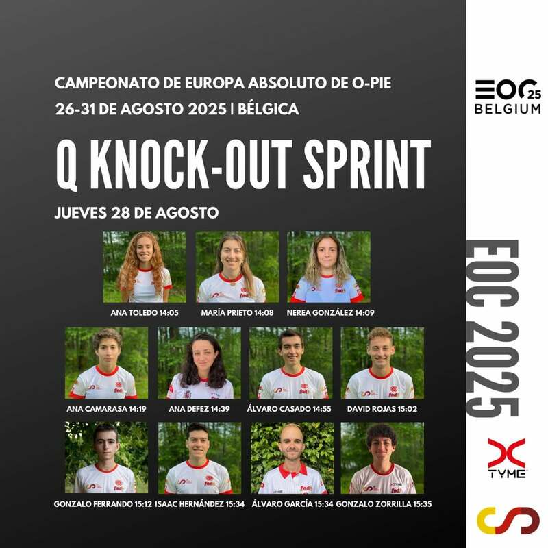 Este jueves 28 se disputa la clasificación del knock-out sprint, en la que los deportistas lucharán por una de las doce plazas que dan acceso a las rondas finales del viernes 29. En esta primera jornada individual participarán: Ana Toledo (14:05), María Prieto (14:08), Nerea González (14:09), Ana Camarasa (14:19), Ana Defez (14:39), Álvaro Casado (14:55), David Rojas (15:02), Gonzalo Ferrando (15:12), Isaac Hernández (15:34), Álvaro García (15:34) y Gonzalo Zorrilla (15:35).