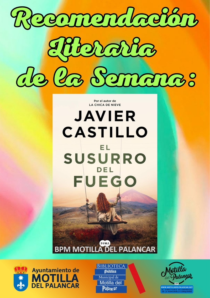 La recomendación de esta semana es una novedad que lleva muy poquito tiempo en la Biblioteca de Motilla del Palancar y va recomendada a nuestros lectores adultos, amantes de la buena novela de intriga y suspense: se trata de “El susurro del fuego” (2025), la última novela publicada de Javier Castillo.