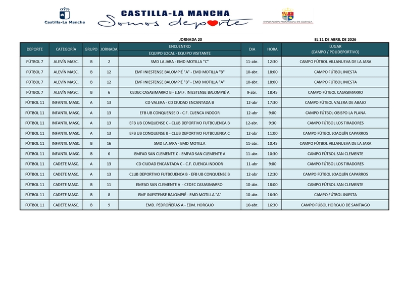 El Deporte Escolar alcanza su vigésima edición con una nueva programación de fútbol y fútbol sala que se desarrollará entre el 8 y el 12 de abril en distintos municipios. Durante estos días, equipos de base volverán a competir en varias categorías dentro de una cita ya asentada en el calendario.