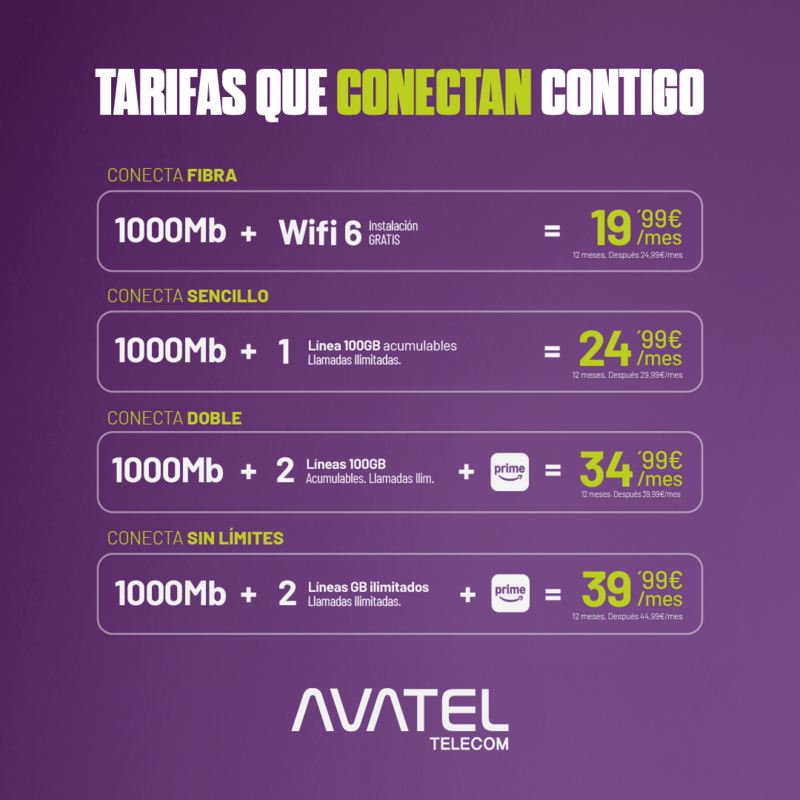 La conectividad se ha convertido en una necesidad básica en cualquier hogar, y en municipios como Motilla del Palancar contar con una buena red de internet y móvil marca la diferencia en el día a día. En este contexto, Avatel Telecom ha presentado su nueva oferta comercial bajo el lema “Tarifas que conectan contigo”, con varias propuestas que parten de una misma base: fibra de 1000Mb, combinada con diferentes opciones de móvil y servicios adicionales.
