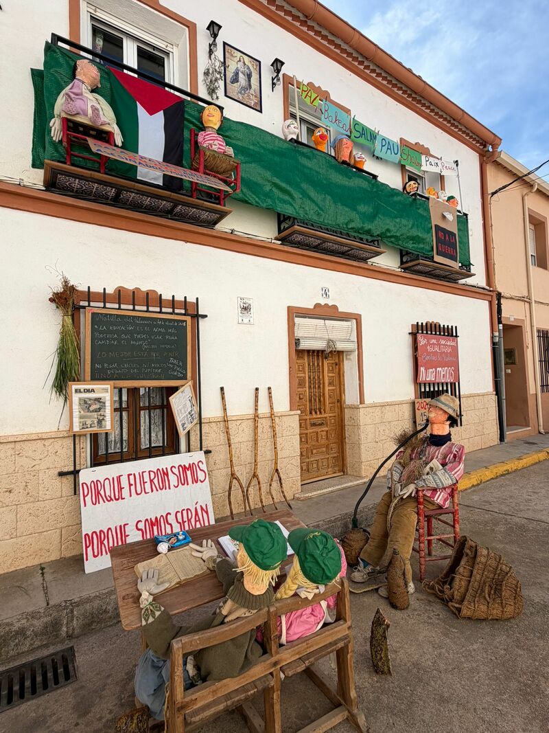 Distintos montajes abordaron temas de actualidad como la violencia de género, los conflictos internacionales o diversas cuestiones sociales. A través de carteles, escenas y elementos simbólicos, los vecinos utilizaron esta tradición como una forma de expresión y reflexión colectiva.