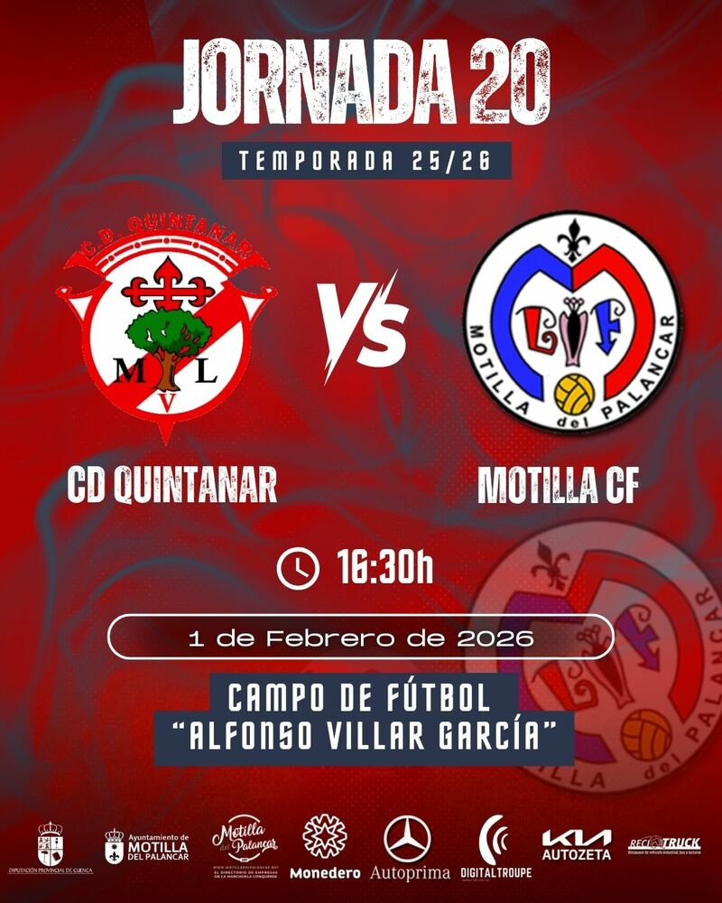 El domingo 1 de febrero de 2026, el Motilla CF se desplazará hasta Quintanar de la Orden para disputar un encuentro de gran importancia ante un rival directo, correspondiente a la Jornada 20 de la temporada.