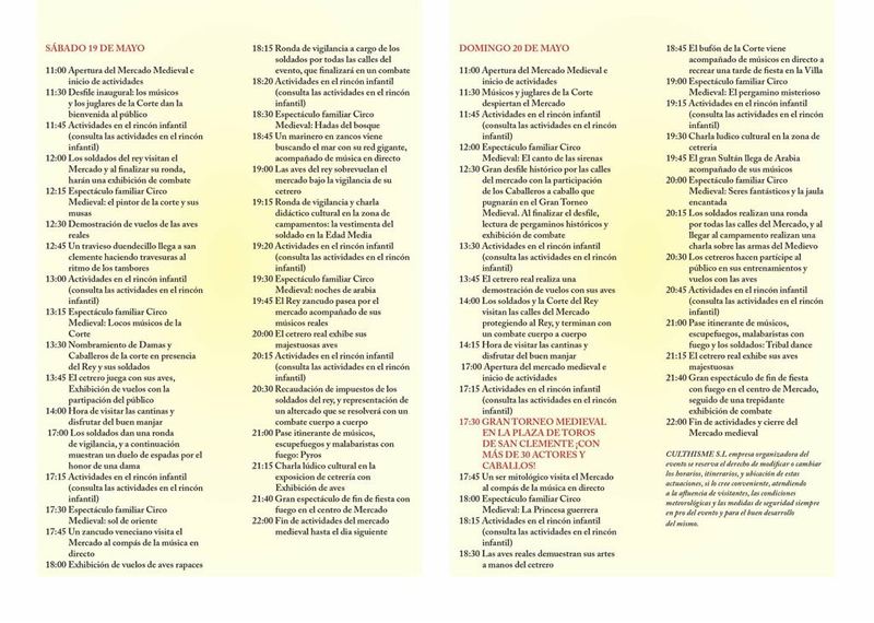 Durante los próximos días 19 y 20 de Mayo se celebra en San Clemente el XIX Mercado Medieval de dicha localidad.