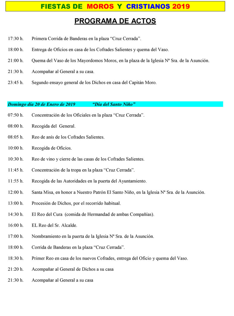 Durante los días 18, 19, 20, 21, 22 y 23 de enero se celebran las fiestas "Moros y Cristianos" de Valera de Abajo.