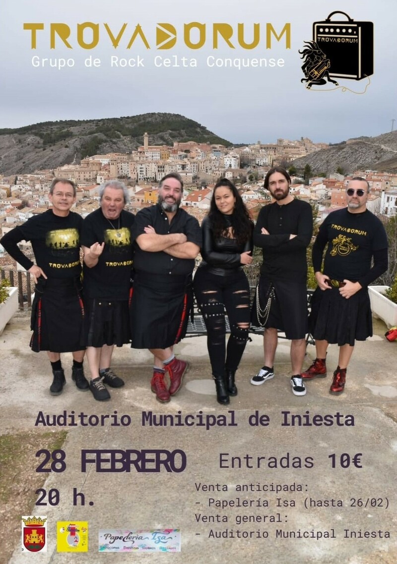 El sábado 28 de febrero, a las 20:00 horas, el Auditorio Municipal de Iniesta acogerá el concierto de Trovadorum, grupo conquense de rock celta que continúa consolidando su trayectoria.