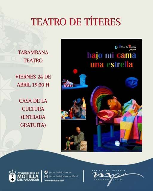 Motilla del Palancar apuesta por el teatro este viernes 24 de abril con la representación de “Bajo mi cama una estrella”, de Tarambana Teatro. La función tendrá lugar a las 19:30 horas en la Casa de la Cultura, con entrada gratuita, en una propuesta pensada para disfrutar en familia