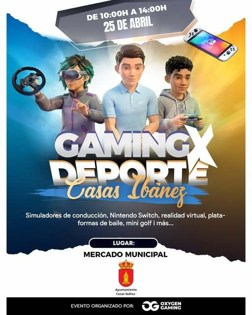 Además, el sábado 25 de abril, de 10:00 a 14:00 horas, el Mercado Municipal acoge la Zona Oxygen Gaming, con simuladores de conducción, simulador de vuelo, realidad virtual y videoconsolas, en una actividad gratuita dirigida a mayores de 5 años.