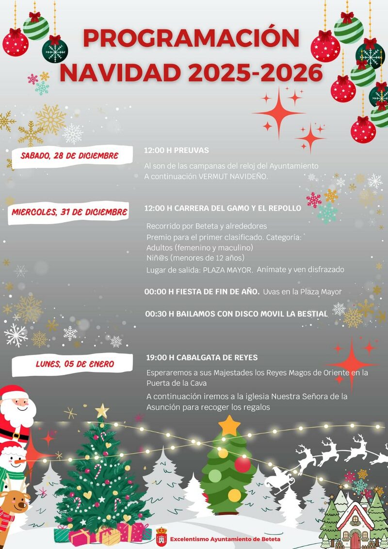 Beteta celebrará la Navidad 2025-2026 con actividades en la Plaza Mayor y la llegada de los Reyes Magos, además de propuestas deportivas y festivas para despedir el año.