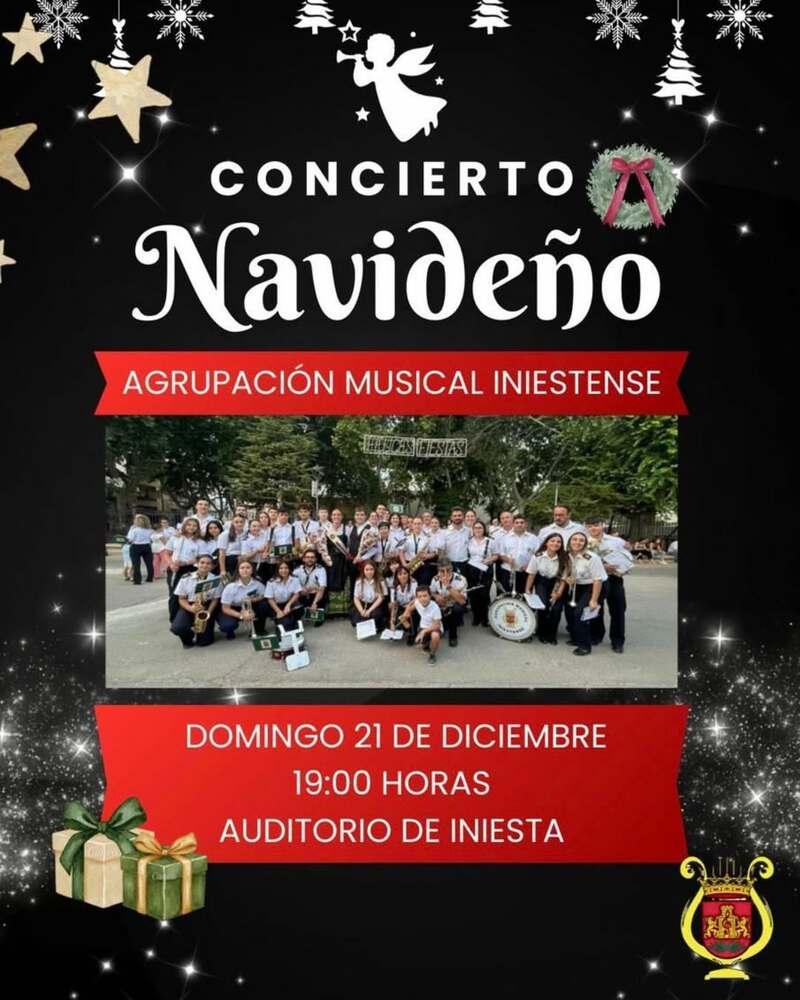 La música será protagonista el domingo 21 de diciembre en Iniesta, con el Concierto de Navidad de la Agrupación Musical Iniestense. La actuación tendrá lugar a las 19:00 horas en el Auditorio Municipal, con entrada libre hasta completar aforo.
