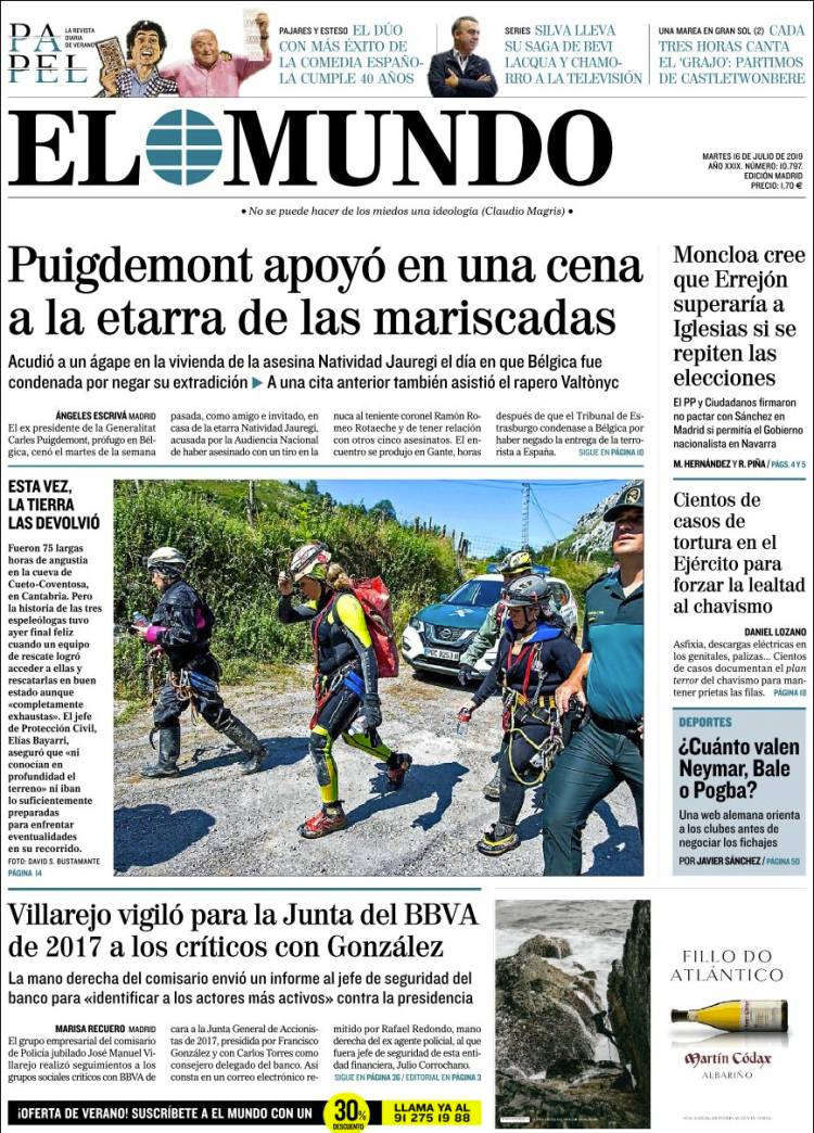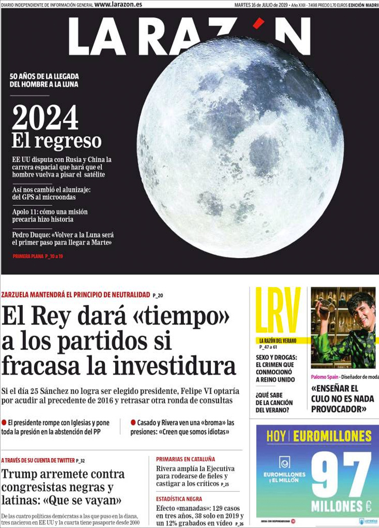Principales portadas de hoy 16 de Julio de 2019