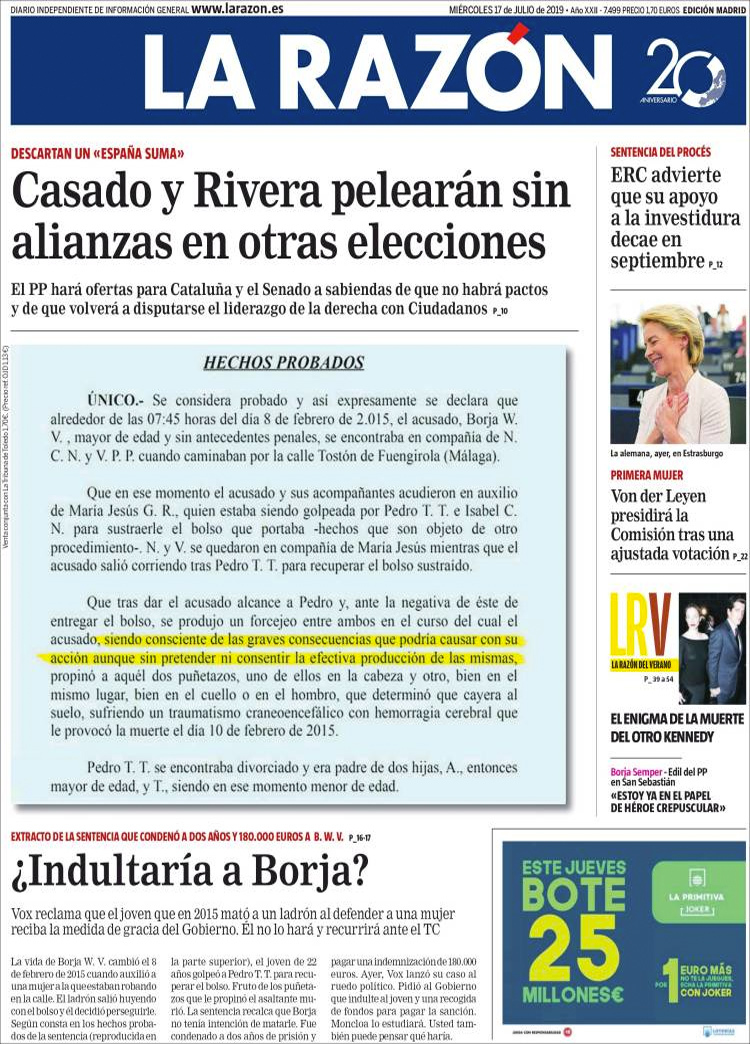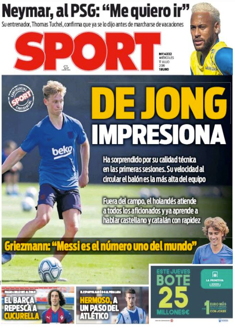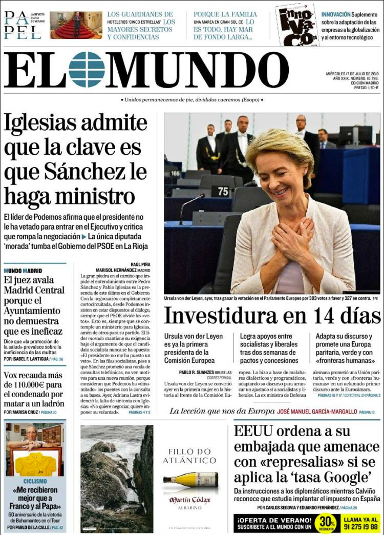 Principales portadas de hoy 17 de Julio de 2019