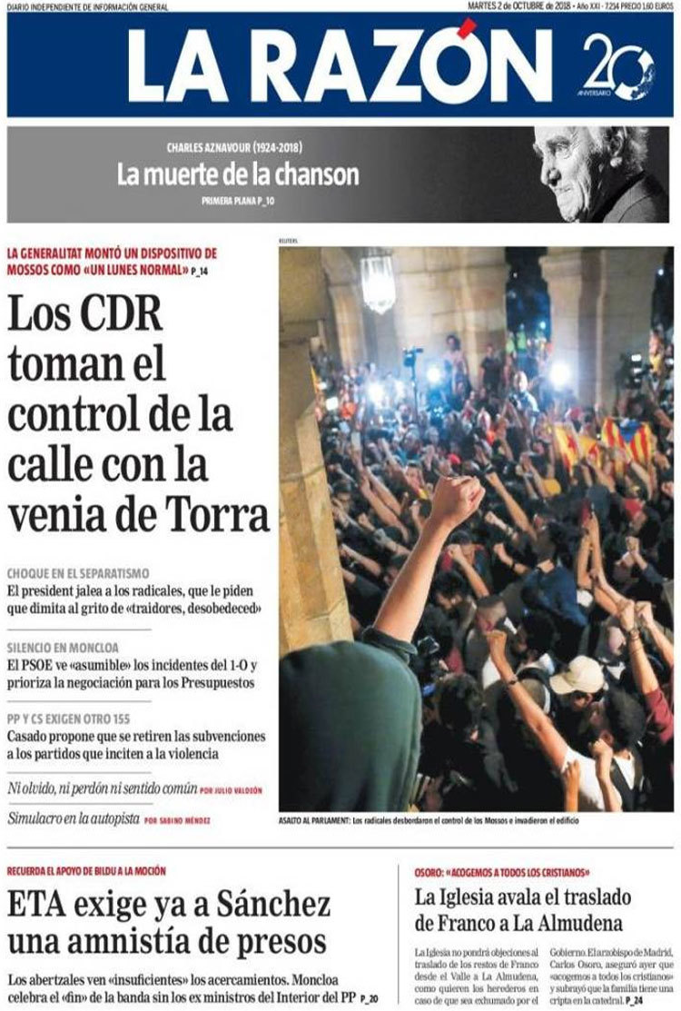 Principales portadas de hoy 2 de octubre de 2018