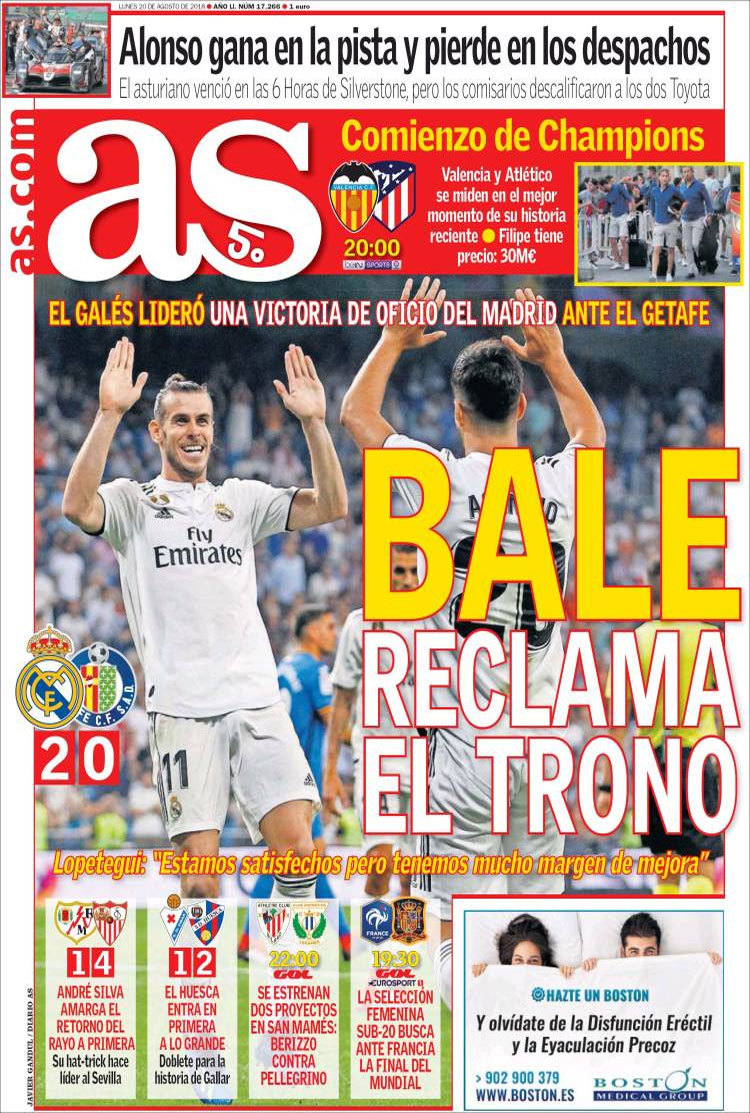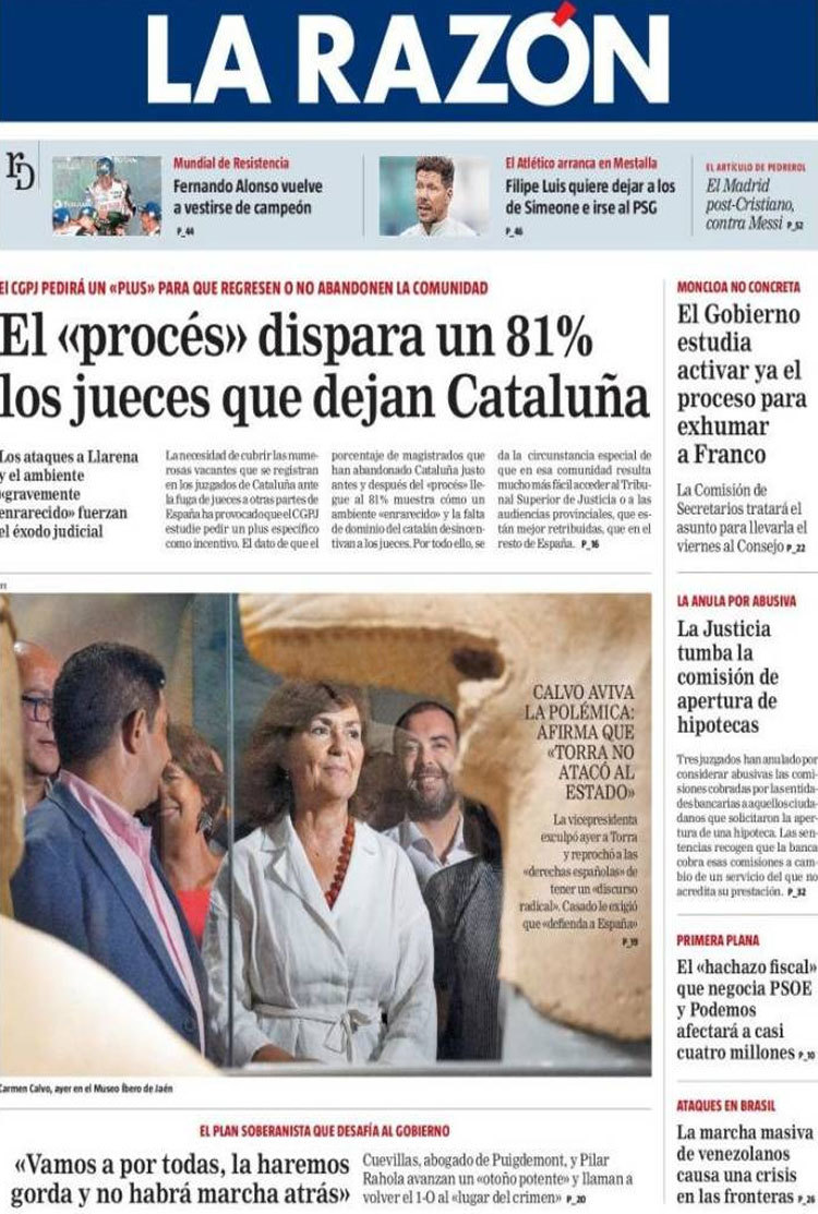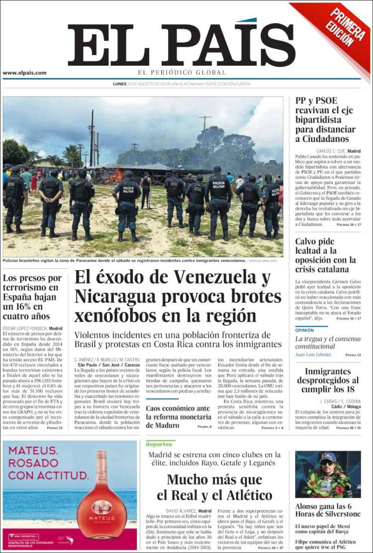 Principales portadas de hoy 20 de Agosto de 2018