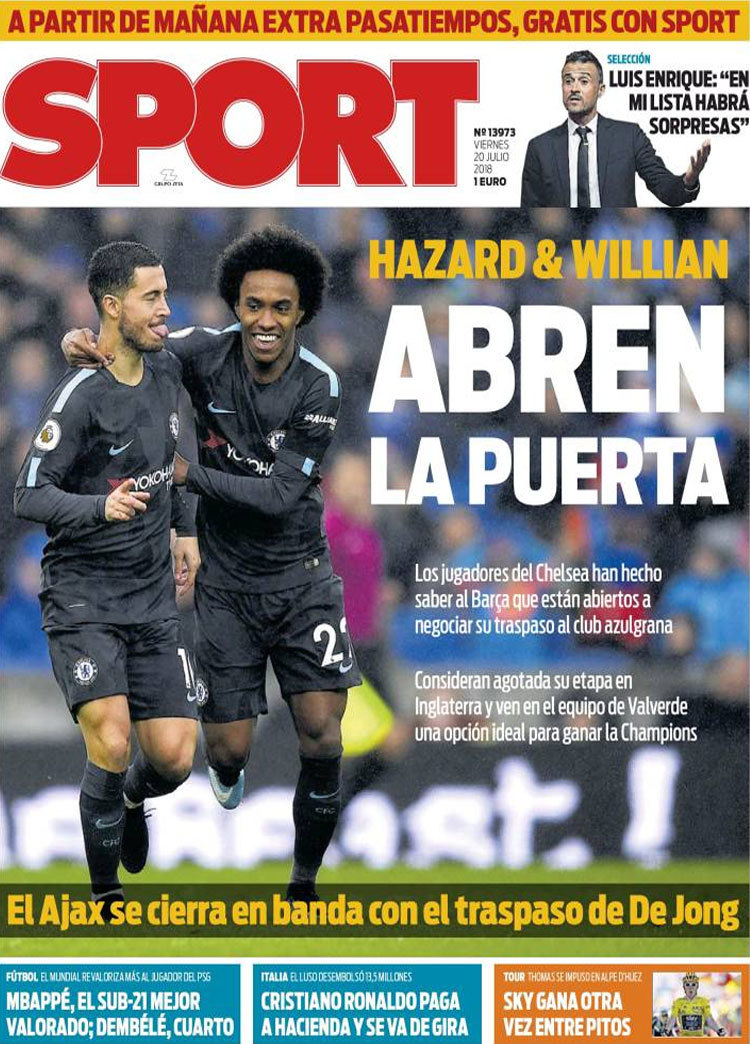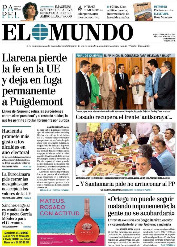 Principales portadas de hoy 20 de Julio de 2018