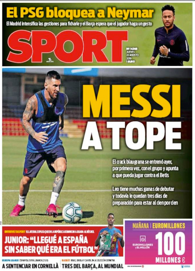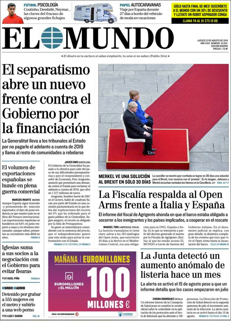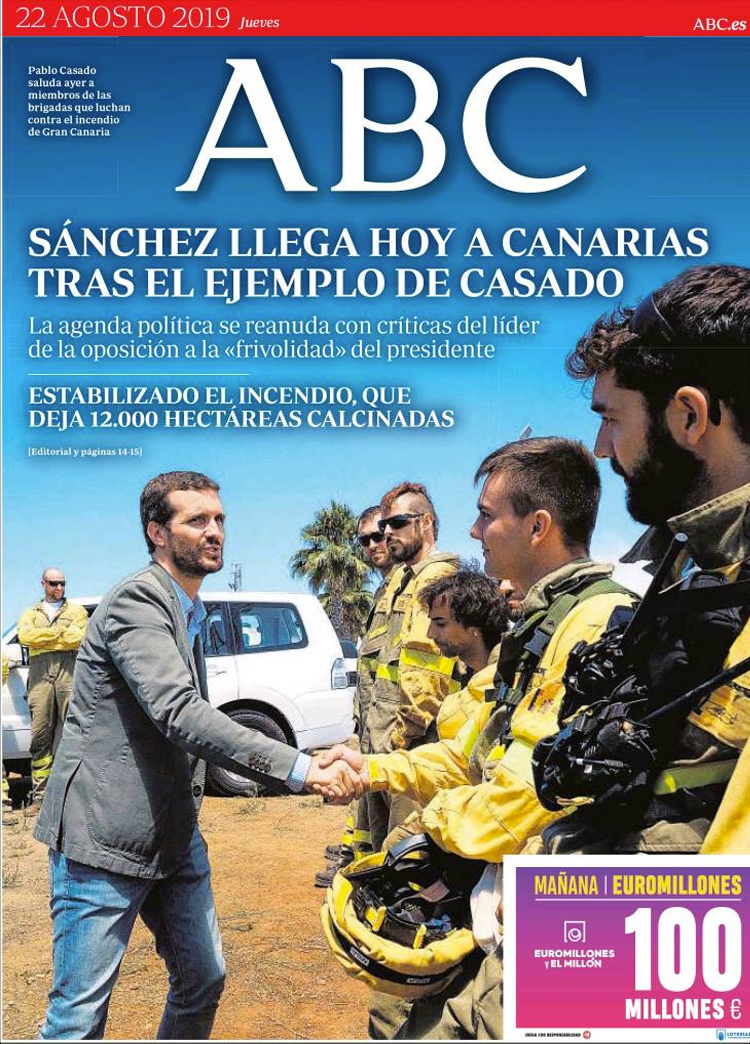 Principales portadas de hoy 22 de Agosto de 2019