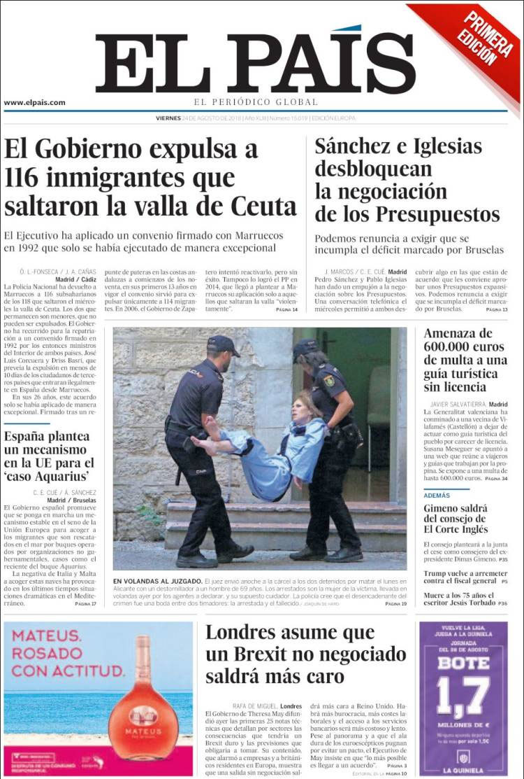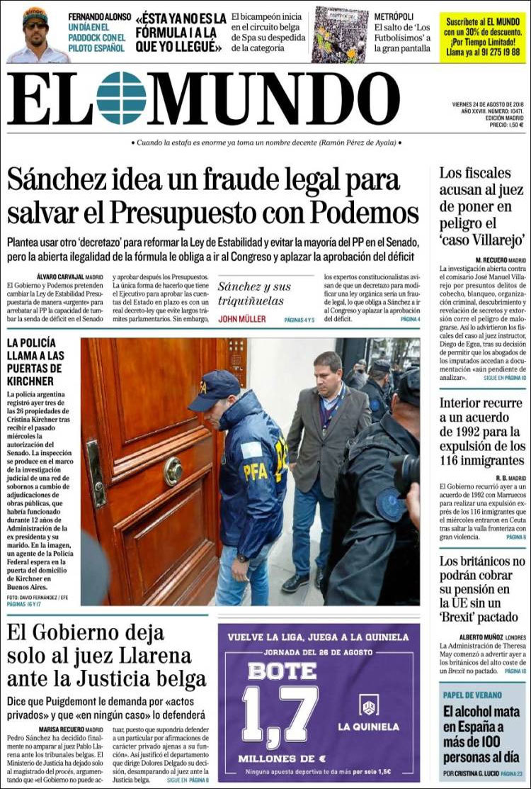 Principales portadas de hoy 24 de agosto de 2018