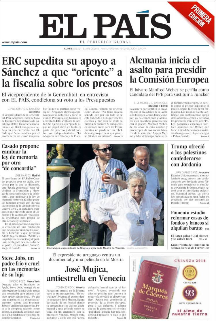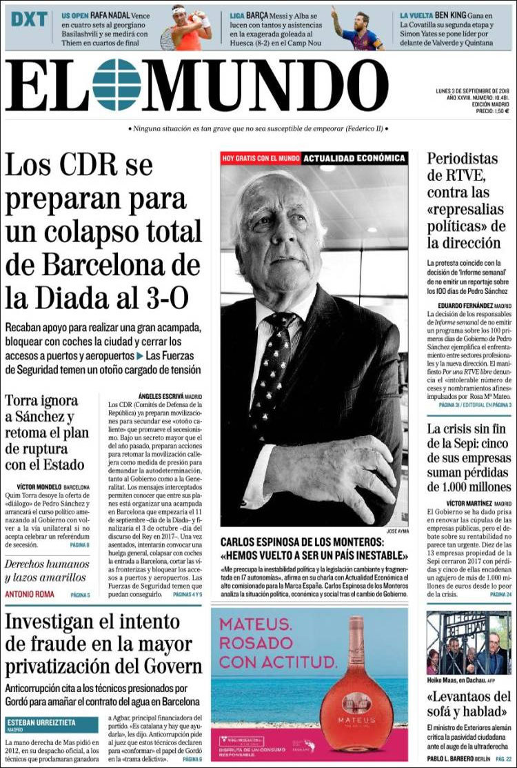 Principales portadas de hoy 3 de septiembre de 2018
