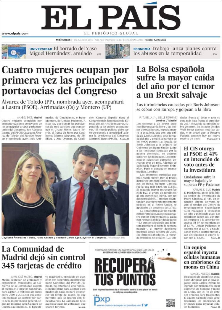 Principales portadas de hoy 31 de Julio de 2019