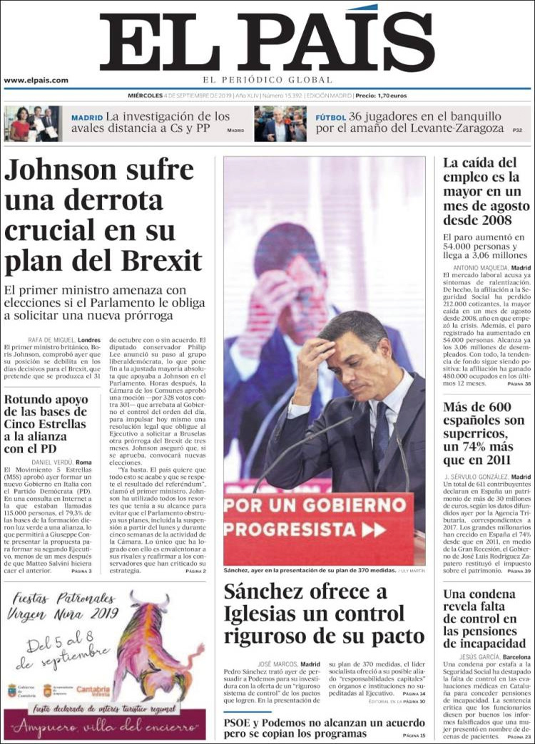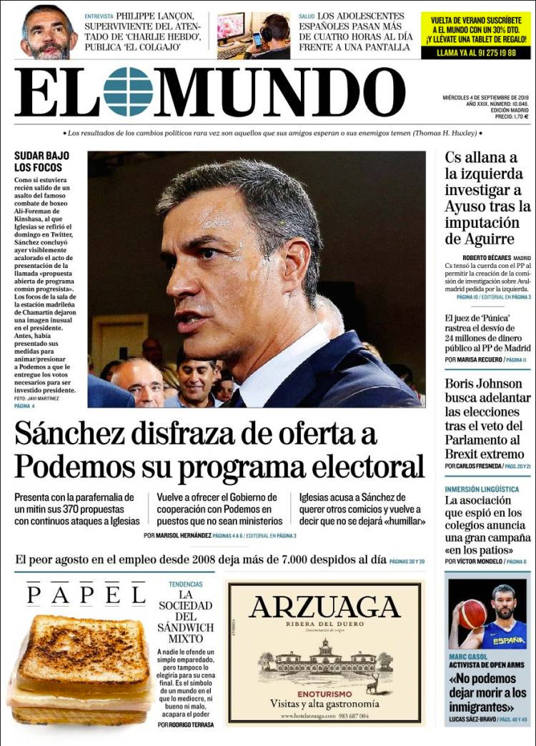 Principales portadas de hoy 4 de Agosto de 2019