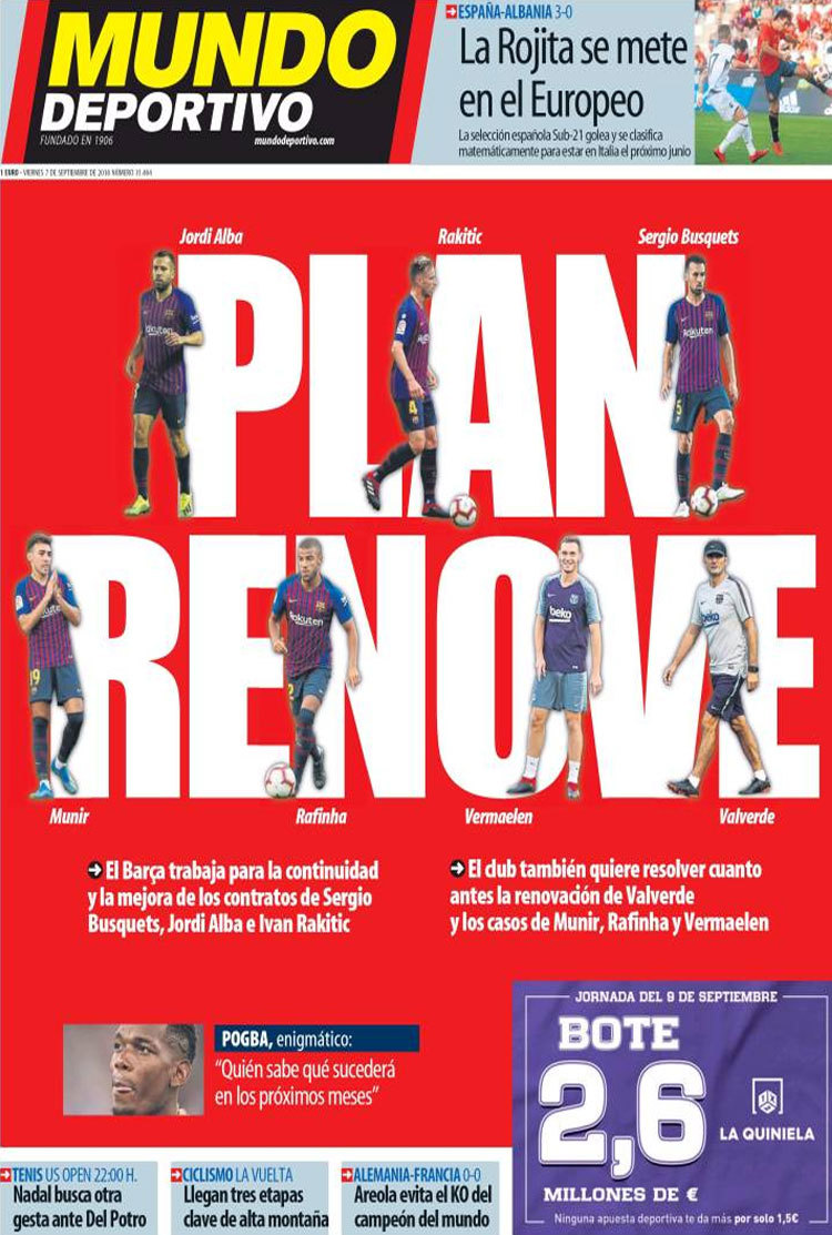 Principales portadas de hoy 7 de septiembre de 2018