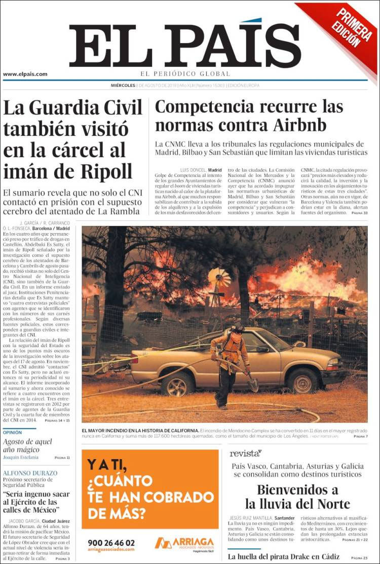 Principales portadas de hoy 8 de Agosto de 2018