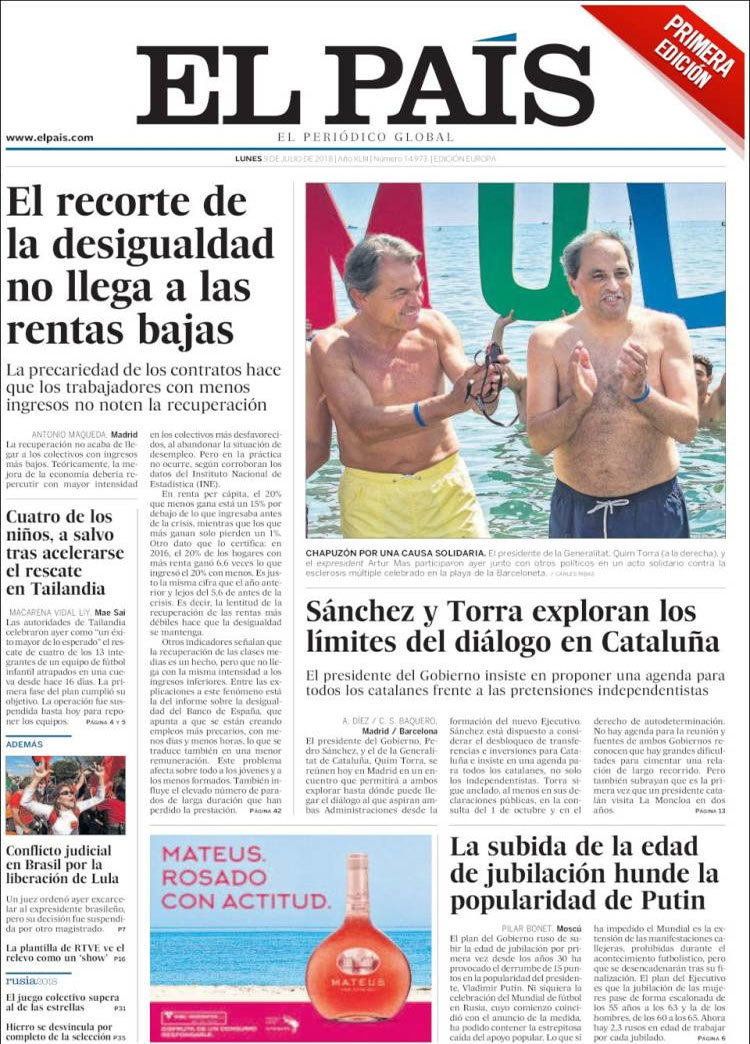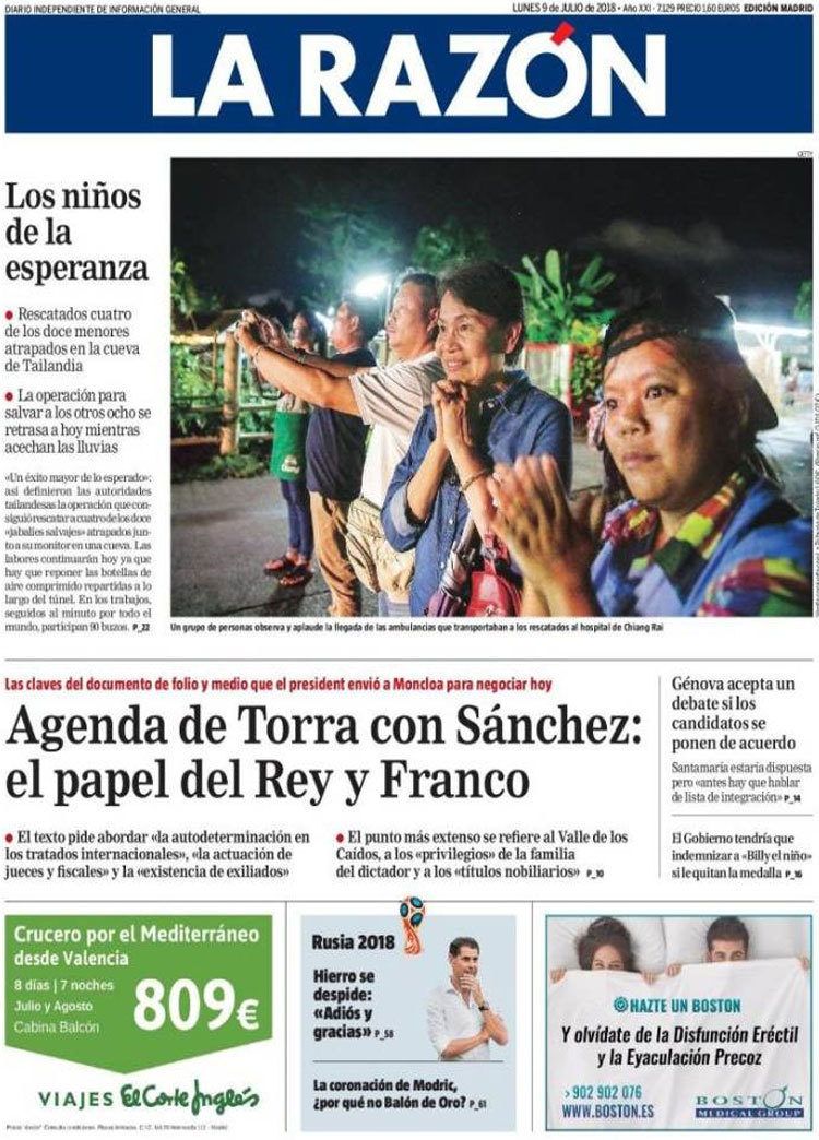Principales portadas de hoy 9 de Julio de 2018