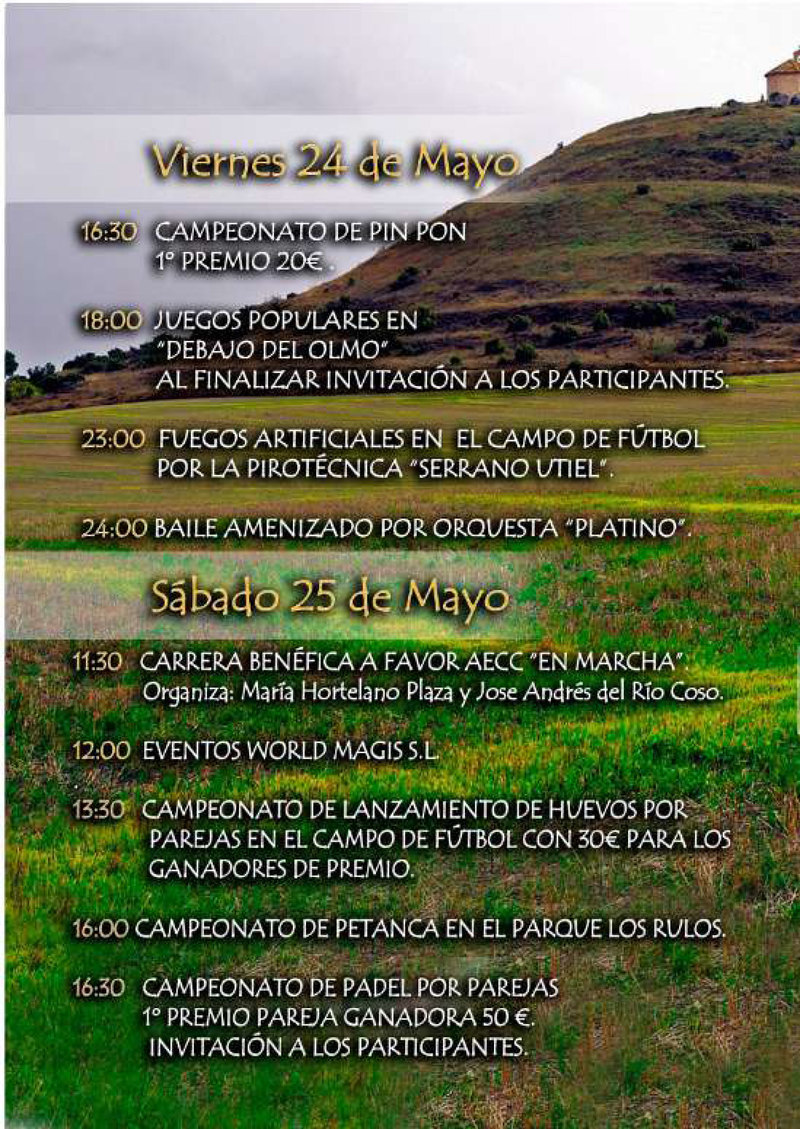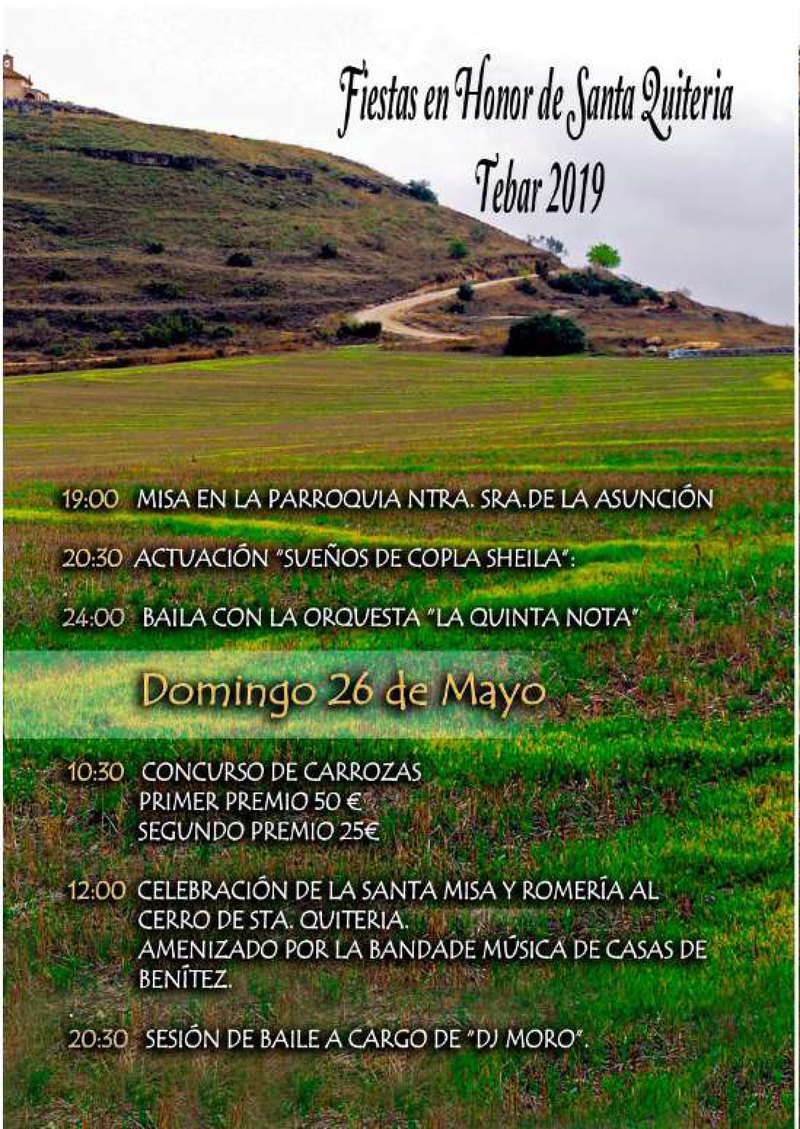 Del 24 al 27 de Mayo se celebran en Tébar las fiestas en honor a Santa Quiteria.
