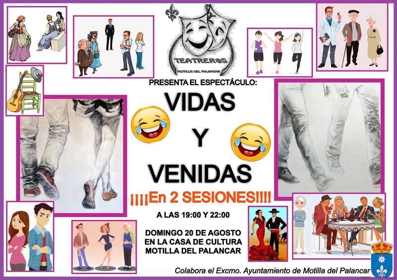 Teatreros de Motilla del Palancar, presenta Vidas y Venidas, un divertido espectáculo que podremos disfrutar en la Casa de la Cultura de Motilla del Palancar en dos sesiones.