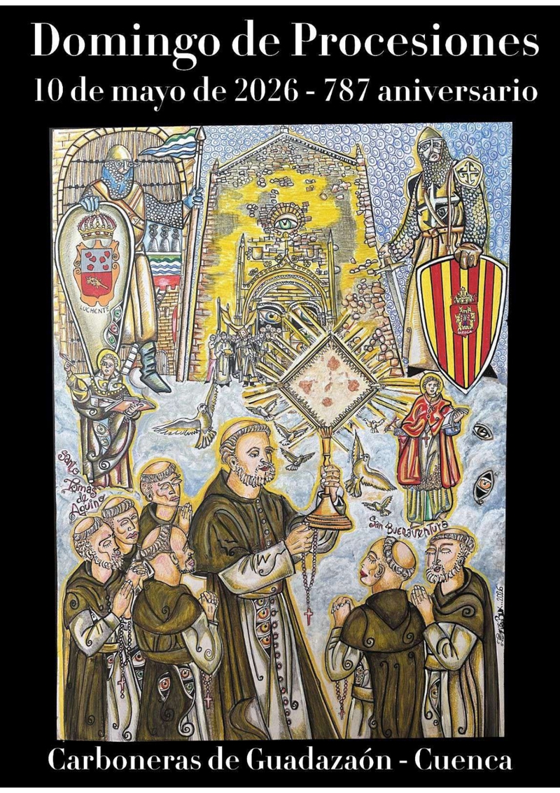 El artista conquense Tomás Bux ha sido el encargado de diseñar el cartel anunciador del Domingo de Procesiones 2026 en Carboneras de Guadazaón, una de las celebraciones más emblemáticas de la provincia de Cuenca. Este evento, que tendrá lugar el próximo 10 de mayo, alcanza su 787 aniversario, convirtiéndose así en una cita clave del calendario religioso y cultural de la comarca.