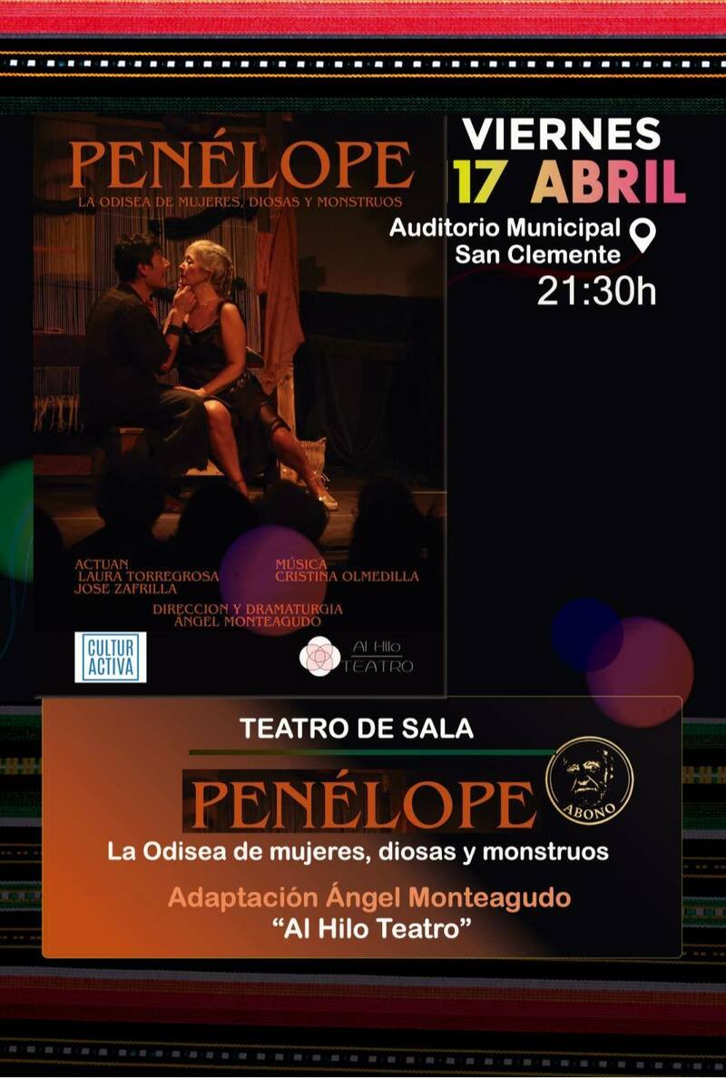 A las 21:30 horas, el Auditorio Municipal acoge la obra “Penélope. La odisea de mujeres, diosas y monstruos”, de la compañía Al Hilo Teatro.